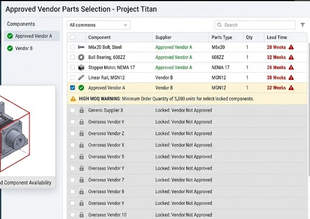 Automate BOM generation with real-time comparison of local vs. overseas suppliers, optimized for your specific volume and lead-time constraints.